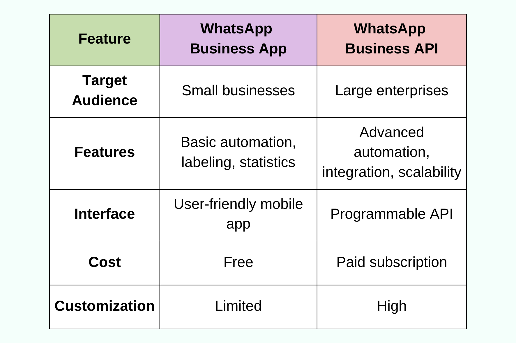 The WhatsApp Business API is like a big, bustling factory. It's more complex, but it can handle a lot more.